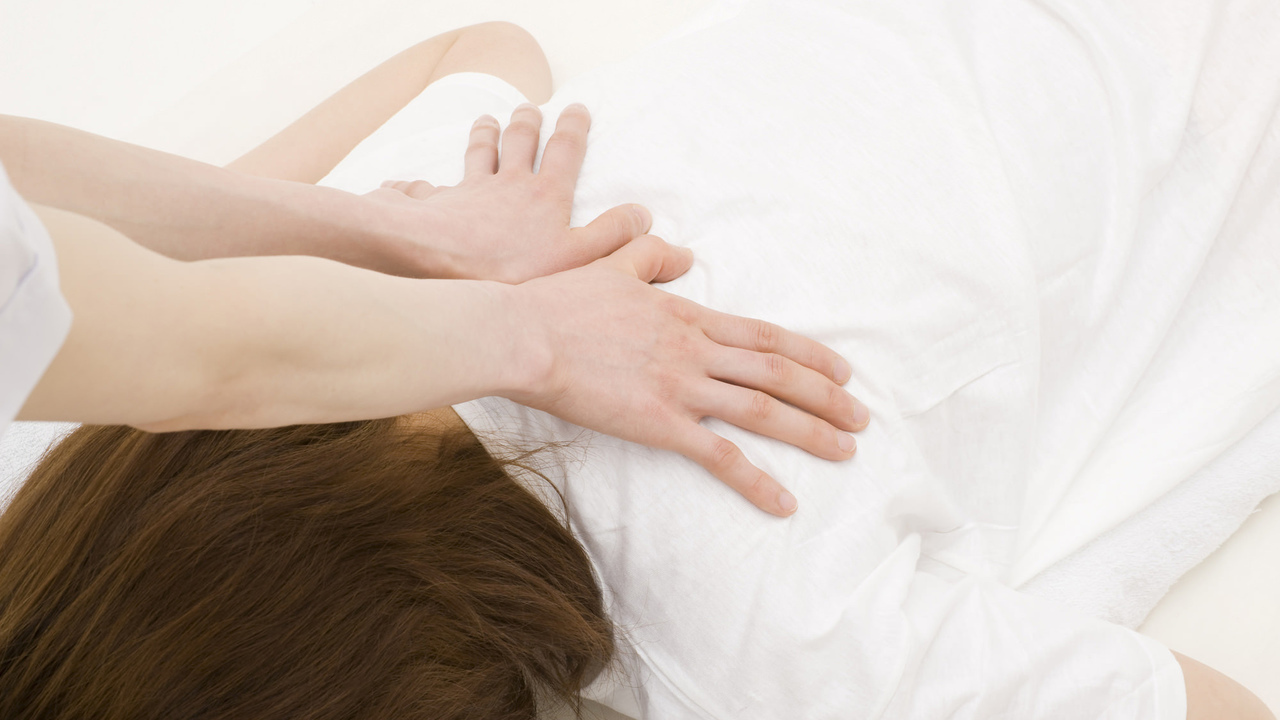 ①まずは体幹である背骨の胸椎、腰椎捻じれを取り、続いて腕と足の捻じれ取り、緊張を解いていきます。